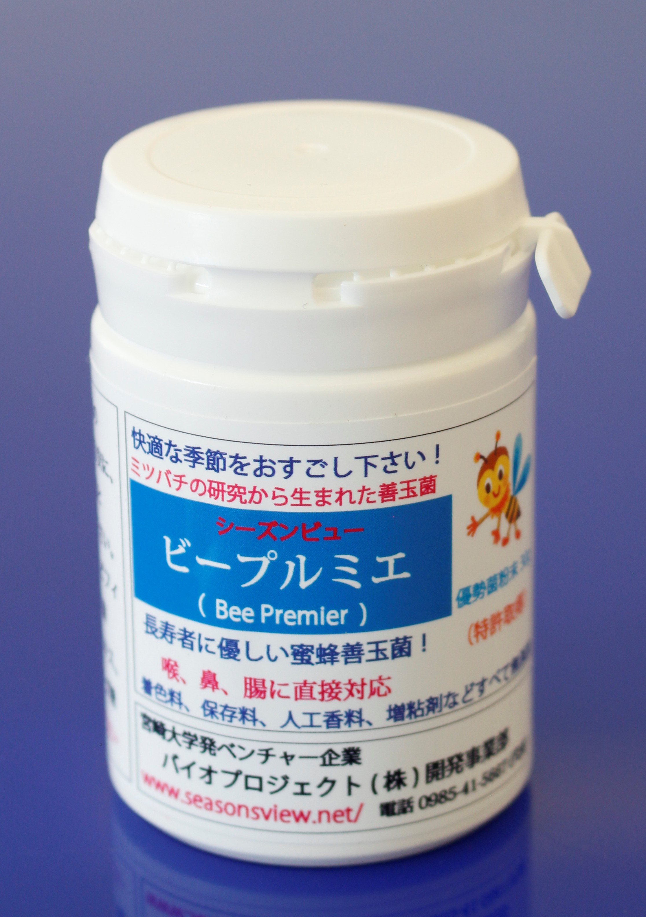 本製品は蜜蜂善玉菌とその生成物で、喉、鼻に直接に対応します。真空・超低温下において高い生菌率で粉末とし、その機能を保存しています。